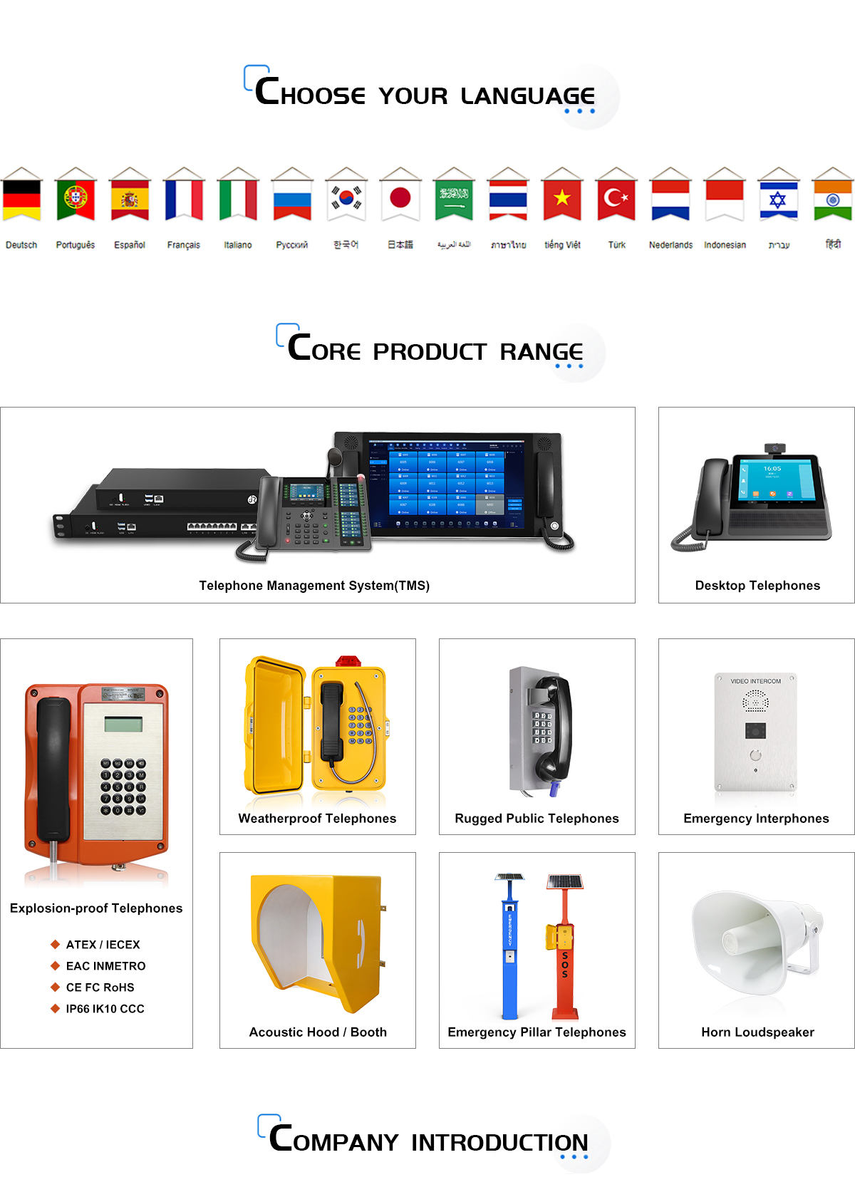 With more than ten years of accumulation and precipitation, for outdoor, high humidity, high noise, hazardous areas, and other special environmental characteristics, J&R has formed a full series of communication products and special solutions with waterproof, explosion-proof, anti-vandal, anti-noise capabilities based on analog, VolP, and 4G communication technologies.